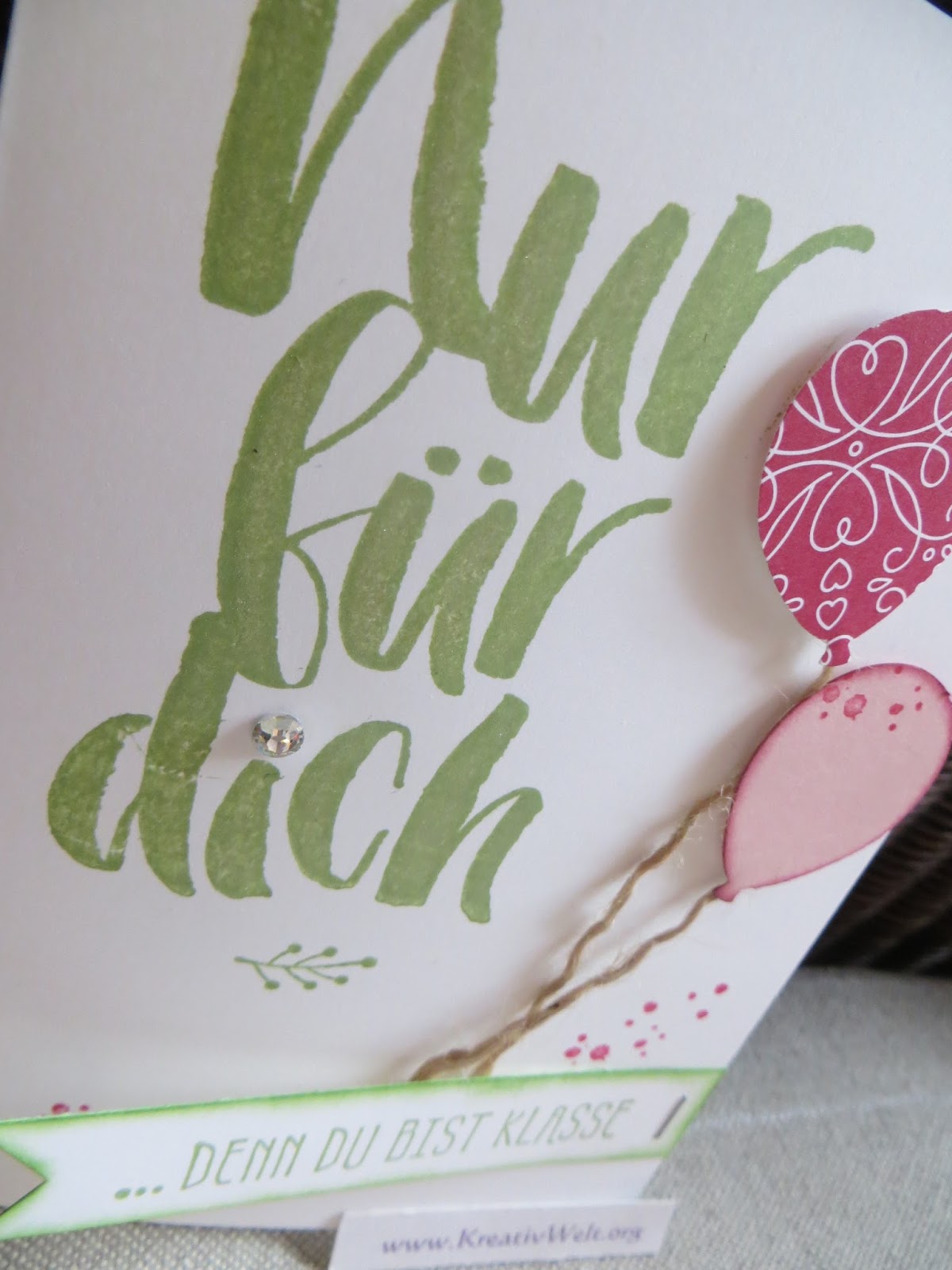 Den gestempelten Schriftzug habe ich noch mit dem neuen "Wink of Stella" -Stift beglitzert - mein neuer Favorit: es gelingt fantastisch.
